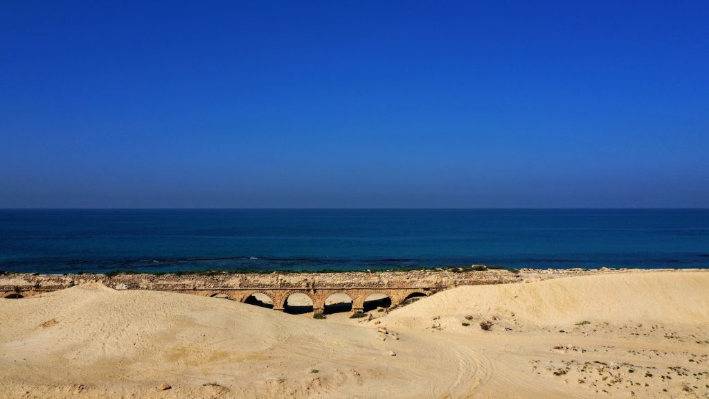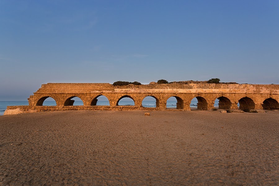 לאורך התקופות נבנו בקיסריה מספר אמות מים: האמה הגבוהה – ההרודיאנית, האמה האדריאנית, האמה הנמוכה בתקופה הביזנטית ותעלה פתוחה בתקופה הצלבנית. כיום קיים במקום חוף מוכרז ונוף יפהפה ועתיד תיבנה טיילת מחברת לבית הכנסת העתיק בנמל.