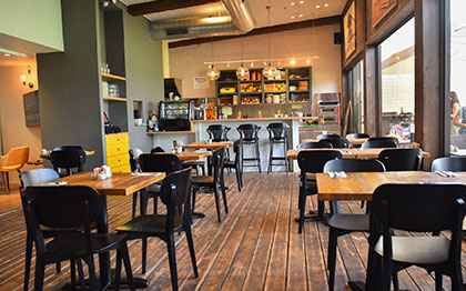 בר-מסעדה אמריקאי, המציע גריל בשרים מובחר, המבורגרים ומיני תבשילים.