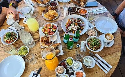 קפה מסעדה. מטבח ישראלי ים תיכוני. ארוחות בוקר עשירות, טפאסים, סלטים, דגי ים טריים ועוד.