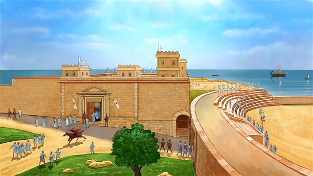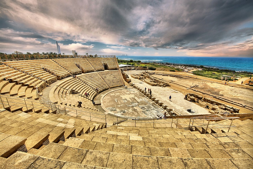 מבנה שעשועים נפוץ בתרבות הרומית הבנוי בחצי עיגול אשר כלל כ- 6000 מקומות ישיבה. התיאטרון בקיסריה הינו אחד מהמפוארים והגדולים שהתגלו בארץ. הועלו בו מחזות, נאומים והופעות ברוח התרבות הרומית. בשלהי התקופה הביזנטית הוסבה רחבת המופעים (האורכסטרה) לבריכה ובמקום נערכו משחקים ותחרויות במים.