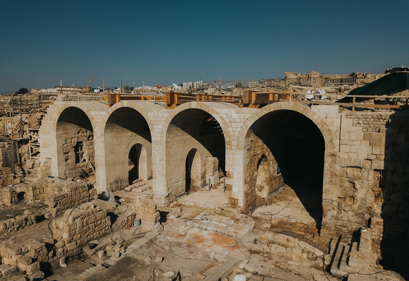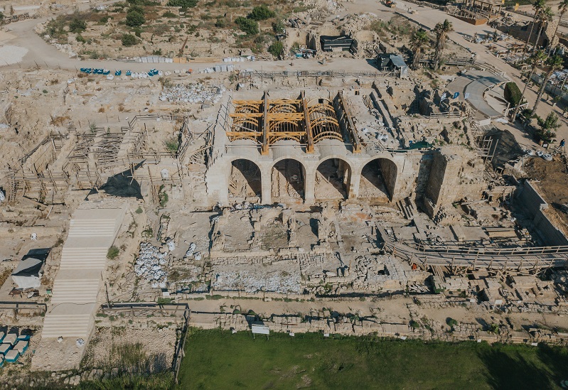 שיקום ושיחזור ארבעת הקמרונות באגף הדרומי חייב שילוב עבודות חפירה ופירוק, הרכבה וייצוב קונסטרוקטיבי, שימור ופיתוח. הפרויקט שהיה מורכב ומאתגר שילב עבודה מאומצת של ארכיאולוגים, מהנדסים ואדריכלי שימור: קירות נושאים הושלמו, פתחי מעבר בצורת קשת נפתחו ושוחזרו, אבנים גדולות ועתיקות חוזקו וכל החזית המערבית הושלמו בקשתות עץ רב שכבתי. לבסוף, אחרי חמש שנים של עבודה מאומצת, הוקם מרכז המבקרים החדשני ובו מגוון מיצגים ואוצרות ארכיאולוגיים שנחשפו במהלך החפירות ביבשה ובים  וסרט אפי על דמותו המרתקת של המלך הורדוס, כפי שאף אחד לא העז הציג. הביקור במקום מחיה את השרידים, מעשיר את החוויה ומאפשר למבקר לעקוב אחרי תהליך חשיפת סיפורה המרתק של העיר וללמוד על אורחות החיים של עברה.